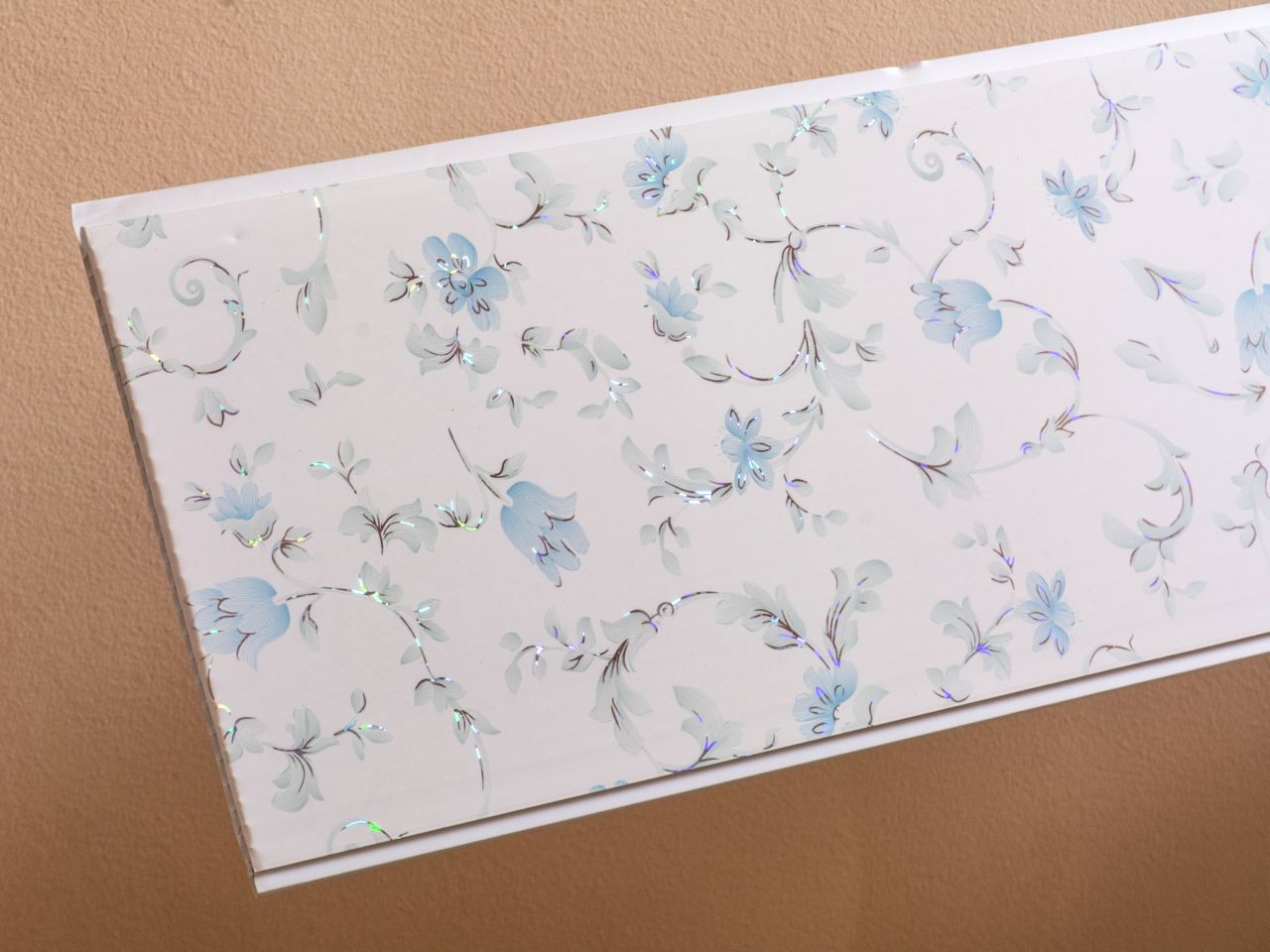 Dekorativna PVC lamperija(zidna obloga) za kuhinje D06.37 dokazuje da moderan stil "Provans" može da se izrazi ne samo na tapetima, zavesama i stolnjacima. Rasuti na bijelom polju plavi cvijetovi oličavaju raspoloženje ležernog odmora na selu. Hologramska tehnologija donosi veći vizuelni efekat od obične boje. Samo zamislite sliku sobe u kojoj velika stara komoda, komforna naslonjača sa naslonom i vezenom prekrivkom, drveni trpezarijski sto i stolice gledaju u pozadini na plave cvijetove ove prelijepe lamperije. Elegantne linije i nježna boja su savršena unutrašnjost za mirno kućno okruženje..